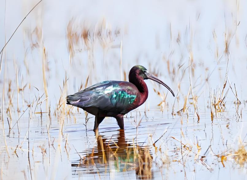 彩鹮的生存完全围绕湿地展开,以水生昆虫、小鱼、小虾为食,依赖湿地植被隐蔽和繁殖。湿地水质、食物丰度、干扰强度的微小变化,都可能迫使彩鹮放弃栖息地。