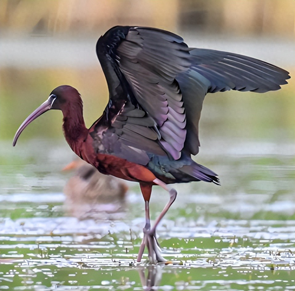 直到09年,彩鹮才在四川重新现身,人们又重新关注起这种“死而复生”的鸟,但是在扬州,这还是彩鹮第一次现身,也因此扬州的“鸟家族”名录被彩鹮刷新了。