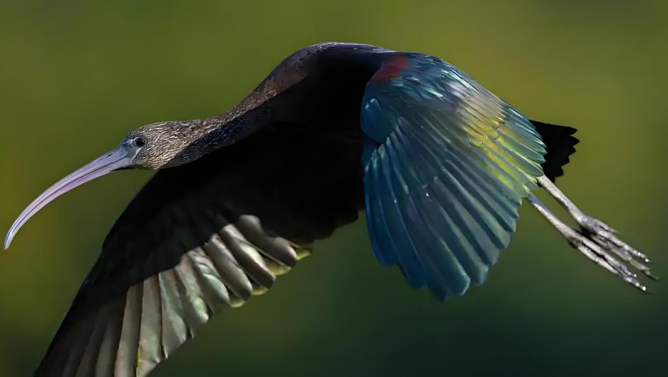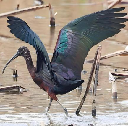 别看彩鹮看上去黑不溜秋跟乌鸦似的,但其实它的羽毛颜色大有玄机。很多观鸟爱好者称其羽毛是“五彩斑斓的黑”,因为它能折射出蓝、紫、绿等多种光泽。